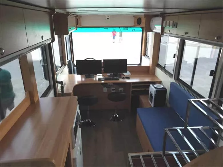 车辆配备办公桌椅、电脑、等办公设施、确保临时办公需求。同时车辆配备电磁炉、沙发、饮水机等可满足驻勤人员临时作息及生活需求。