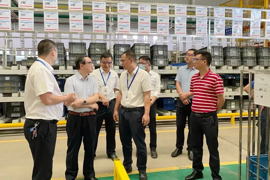 调研团来到佛吉亚(柳州)排气的生产车间,通过与工作人员交流,了解公司的先进设备配置、制造工艺流程和佛吉亚FES体系,并给予高度评价。